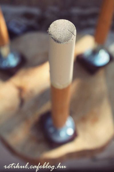 Már csak három retro láb kellett hozzá…Két emberkétől kérdeztem,(mert már igen jól tudom kinél kell hasonló kérésekkel kopogtatni)…hogy esetleg hátha van nekik,olyan kidobásra ítélt,dohányzó asztalka vagy bármi,aminek ilyen jó kis hengeres retro lába van.Lett is…a kérés elhangzása után nem sokkal,az egyik kedves kolléganőm meg is jelent,pont olyan lábakkal,amit elképzeltem!
