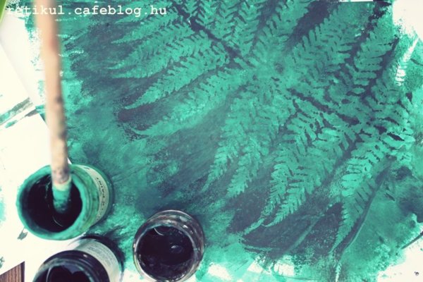 Hengerrel vittem fel a rétegeket,többféle zöldet,egy kis szürkével…szóval kevertem a zöldeket,a végén meg a festékeket is.