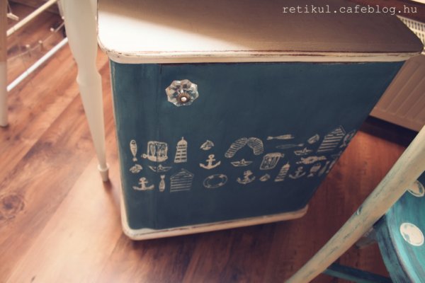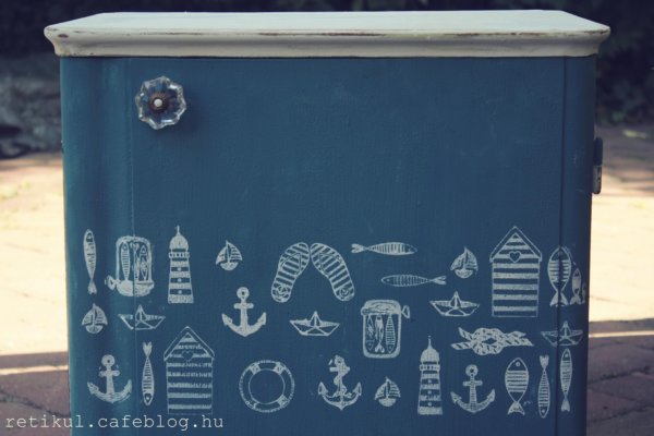 Az ajtajára a lányom kérésére tengerparti motívumok kerültek,nyomdáztam mindet…a fogantyú már évek óta meg volt itthon,nem emlékszem hol vettem.
