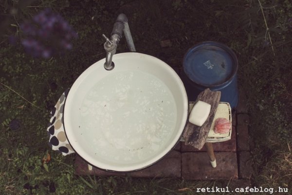 Gyerekkoromban a nagyszüleimnél is ott volt a kerti csap, mint minden falusi háznál…hokedli, rajta egy nagy fehér, zománcos vájling, mellette szappan és törölköző.