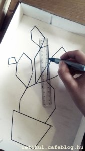 Száradás után rárajzoltam az ‘origami’ kaktuszt.