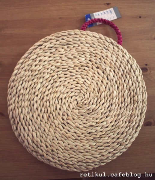 A táska ügy azzal kezdődött, hogy vettem a Pepco-ban 1490ft.-ért egy kerti párnát, olyan natúr verziót, kukorica csuhéból fonva, élénk pink volt a fogantyúja…de ez nem zavart, tudtam, hogy az úgy is lekerül róla.